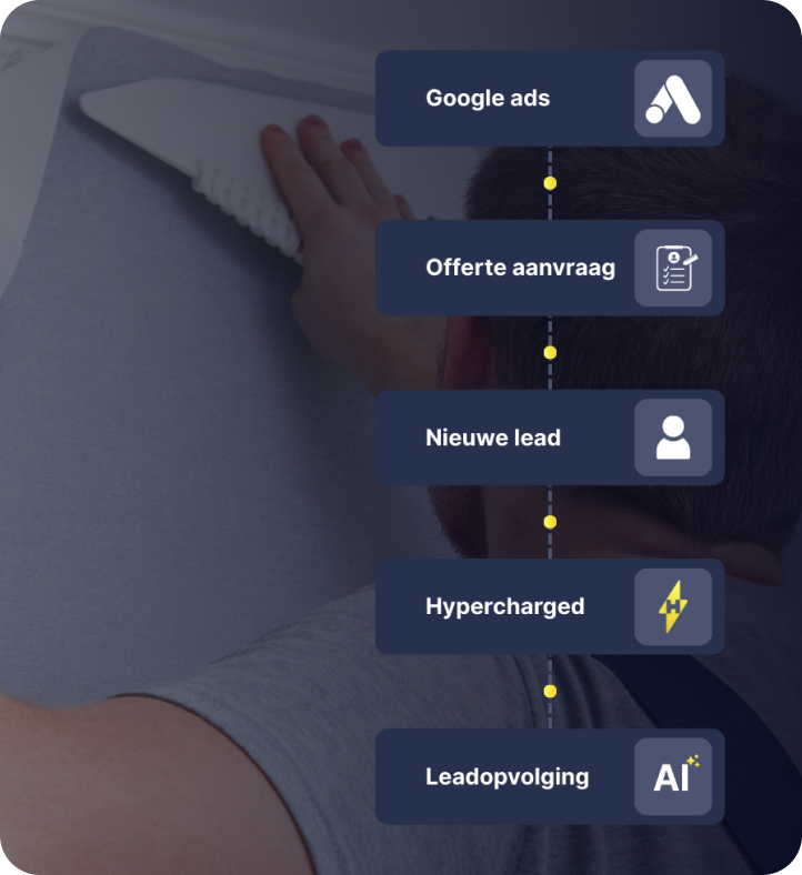 Zijn conversiepercentage bleef daardoor lager dan gehoopt, en er zat veel handmatig werk in het opvolgen van offertes. De opvolging gebeurde inconsistent, en als hij al tijd had om te bellen, kreeg hij vaak niemand te pakken.