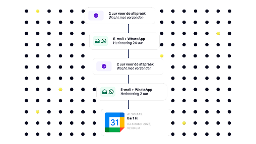 Zowel jij als de lead ontvangen automatisch een bevestiging. Inclusief reminders vooraf, zodat geen enkele afspraak wordt vergeten.