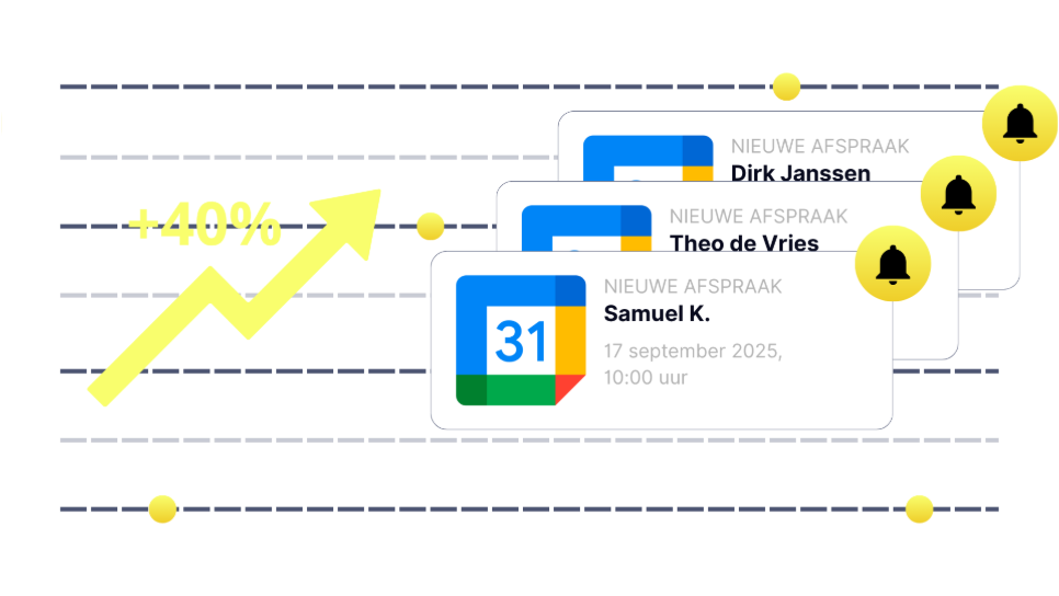 AI-agents reageren binnen enkele minuten op nieuwe leads, stellen slimme vragen en blijven opvolgen totdat er een antwoord komt. AI-agents kunnen zelfstandig afspraken inplannen met leads. Dit bespaart enorm veel tijd en verhoogt de conversie van leads naar klanten.